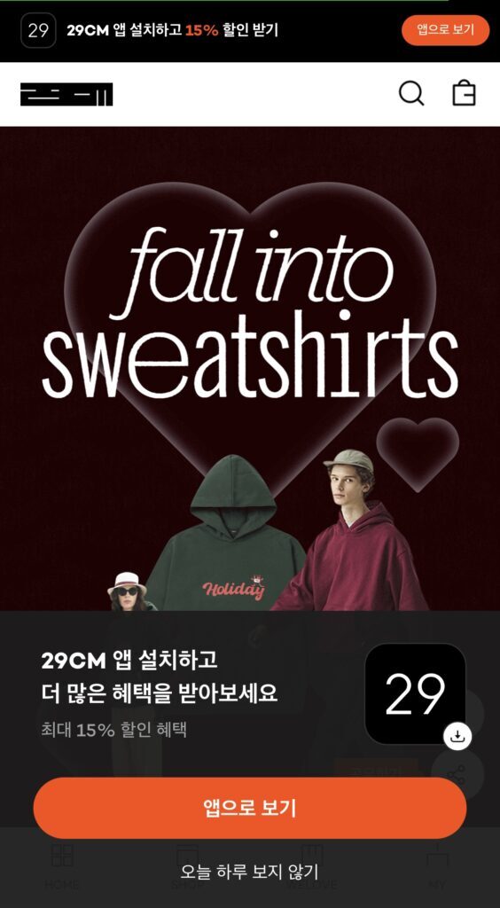 모바일 웹 페이지에서 배너를 통한 앱 다운로드 유도 🔖