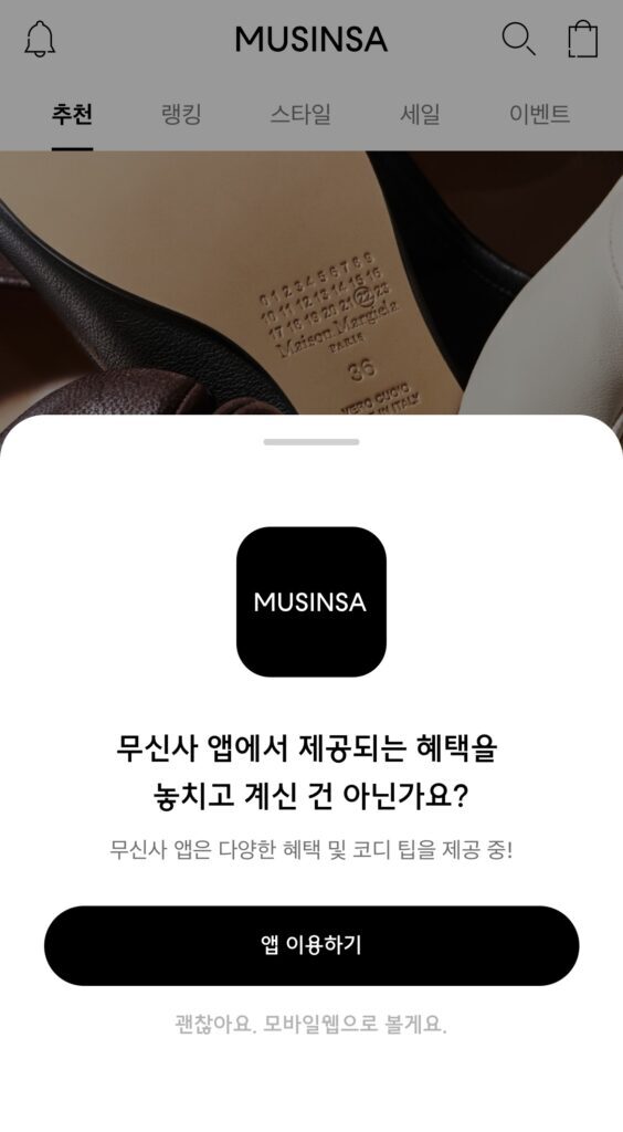 모바일 웹/앱 모두 지원하는 서비스의 경우 추가적인 기능 지원 또는 유저의 행동 데이터 확보 등을 위해 앱 다운로드를 유도하는 경우가 있습니다.